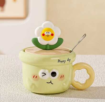 İTHAL KUPA-KAPAKLI&KAŞIKLI ÇİÇEK KUPA - YEŞİL K-1-29