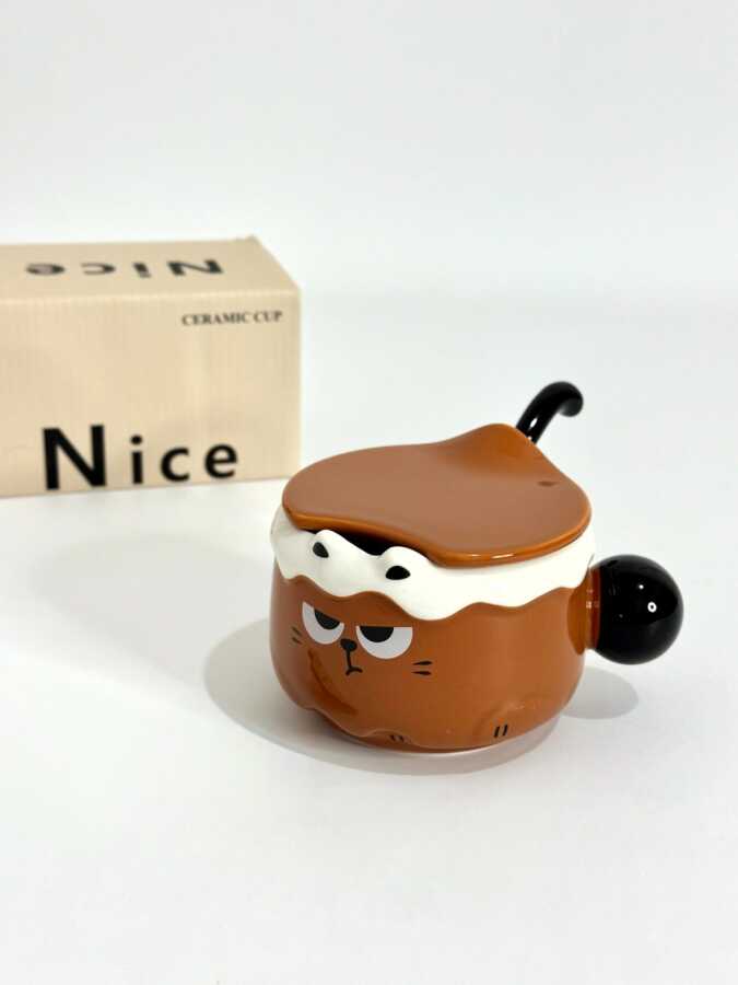 İTHAL KUPA-KAŞIKLI&KAPAKLI KEDİ KUPA - KAHVERENGİ K-1-11