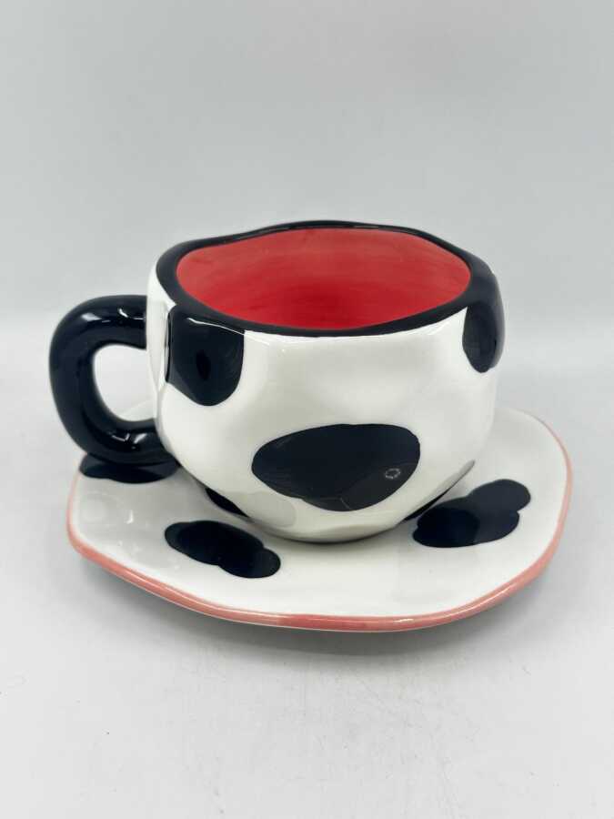 İTHAL KUPA-TABAKLI ÇAY FİNCANI - İNEK DESEN K-2-17