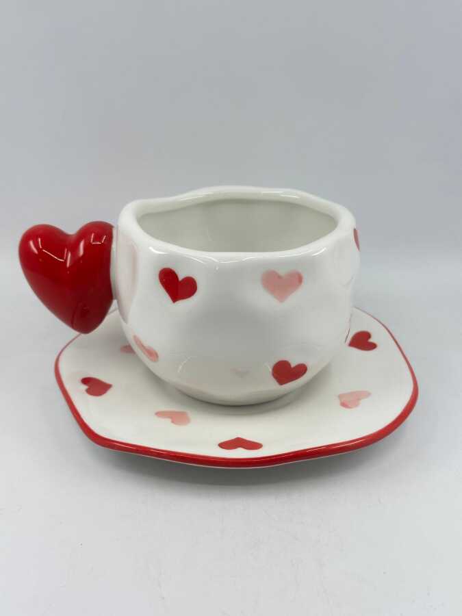 İTHAL KUPA-TABAKLI ÇAY FİNCANI - KALPLER KIRMIZI KALP SAP K-2-13