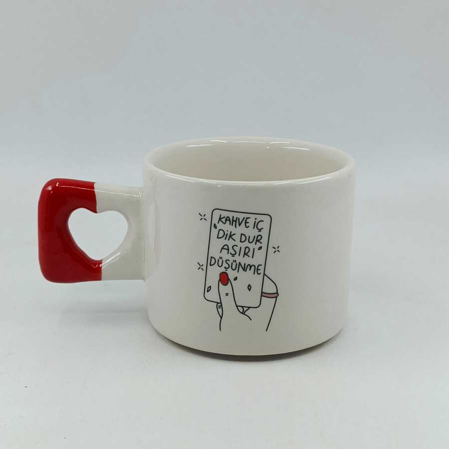 KAHVE İÇ DİK DUR-KALP KUPA - KIRMIZI SAP