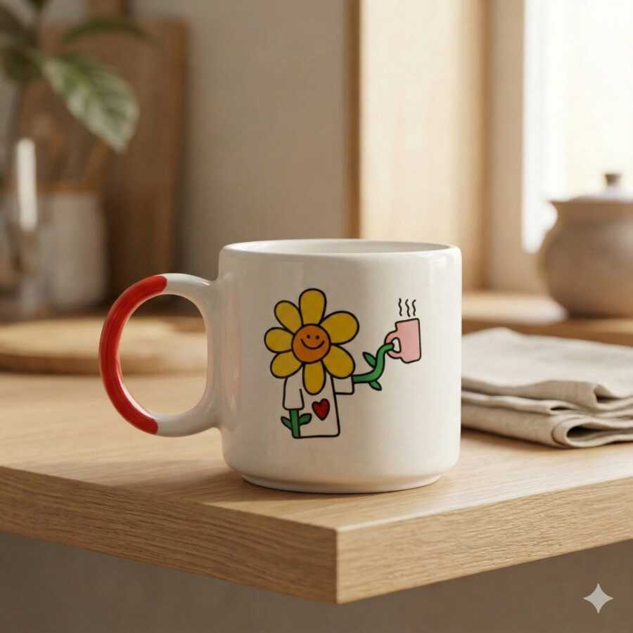 KAHVE TUTAN ÇİÇEK-D KUPA - TURUNCU SAP