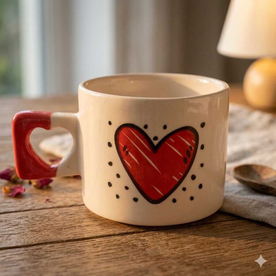 RENKLİ KALP LOVE YOU-KALP KUPA - KIRMIZI SAP