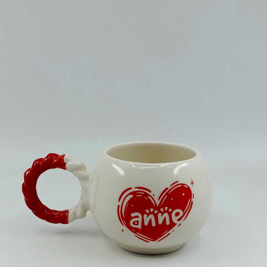 KIRMIZI EL ÇİZİMİ KURDELE-ÖRGÜLÜ BALONCUK KUPA - KIRMIZI SAP
