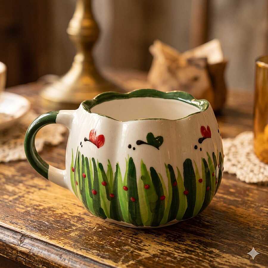 KİRAZ VE ÇİMEN - 3D-ÇİÇEK KUPA - 3D