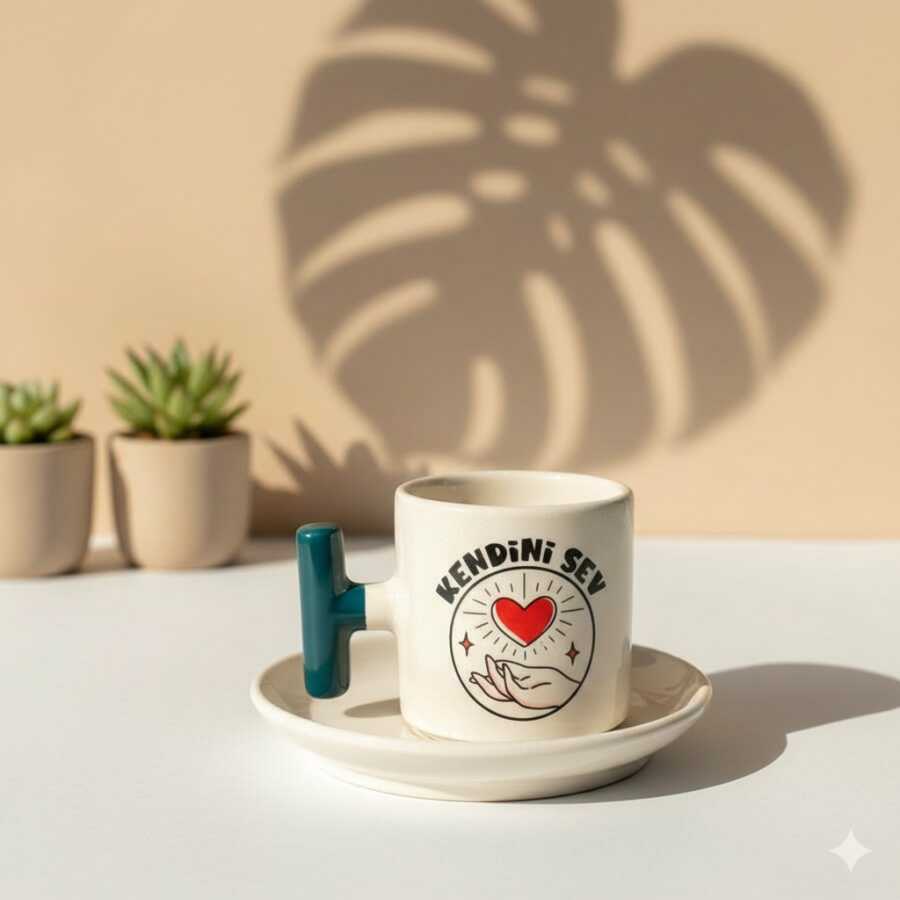 KENDİNİ SEV-T TÜRK KAHVESİ FİNCANI - SİYAH SAP