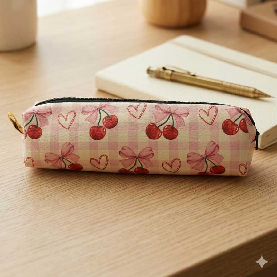 KİRAZLAR PEMBE KURDELE-DERİ KALEM KUTU - TEKLİ
