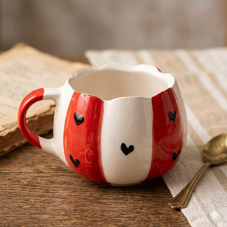 KIRMIZI ÇİZGİLER KALP - 3D-ÇİÇEK KUPA - 3D