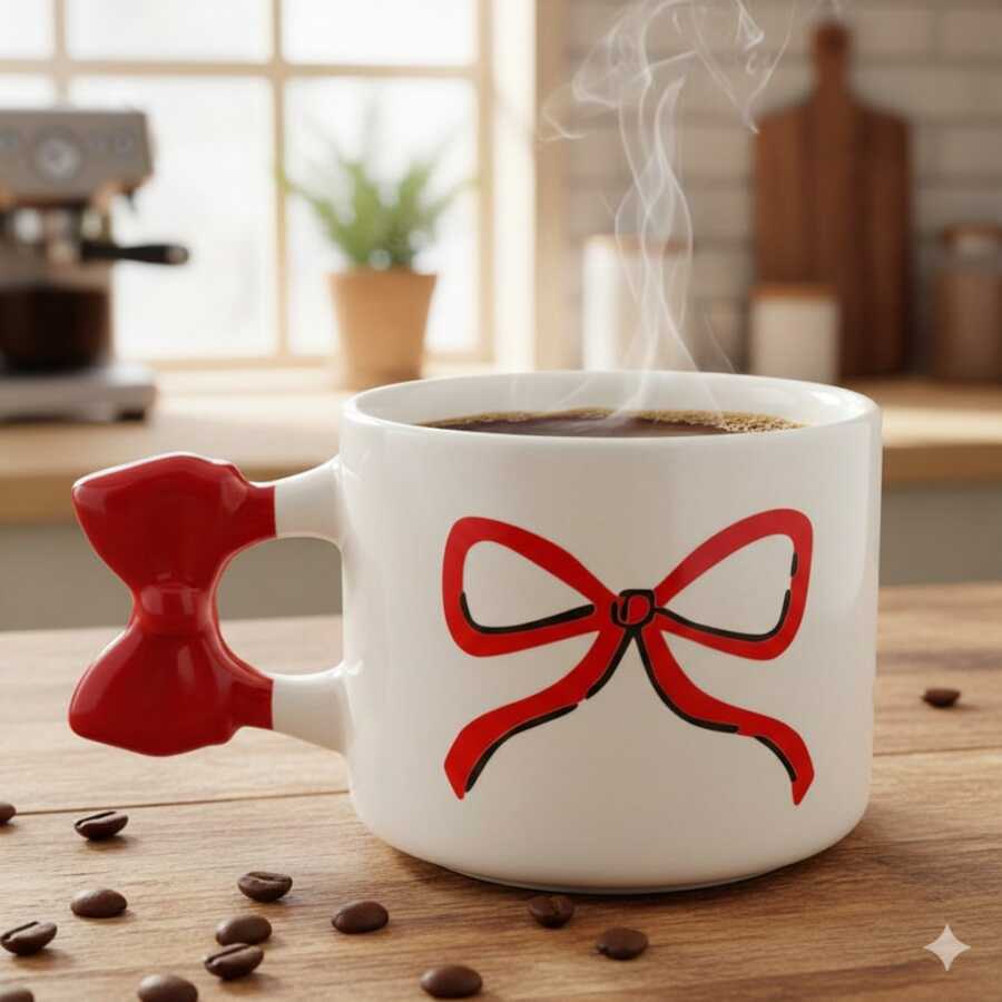 KIRMIZI EL ÇİZİMİ KURDELE-KURDELE KUPA - KIRMIZI SAP