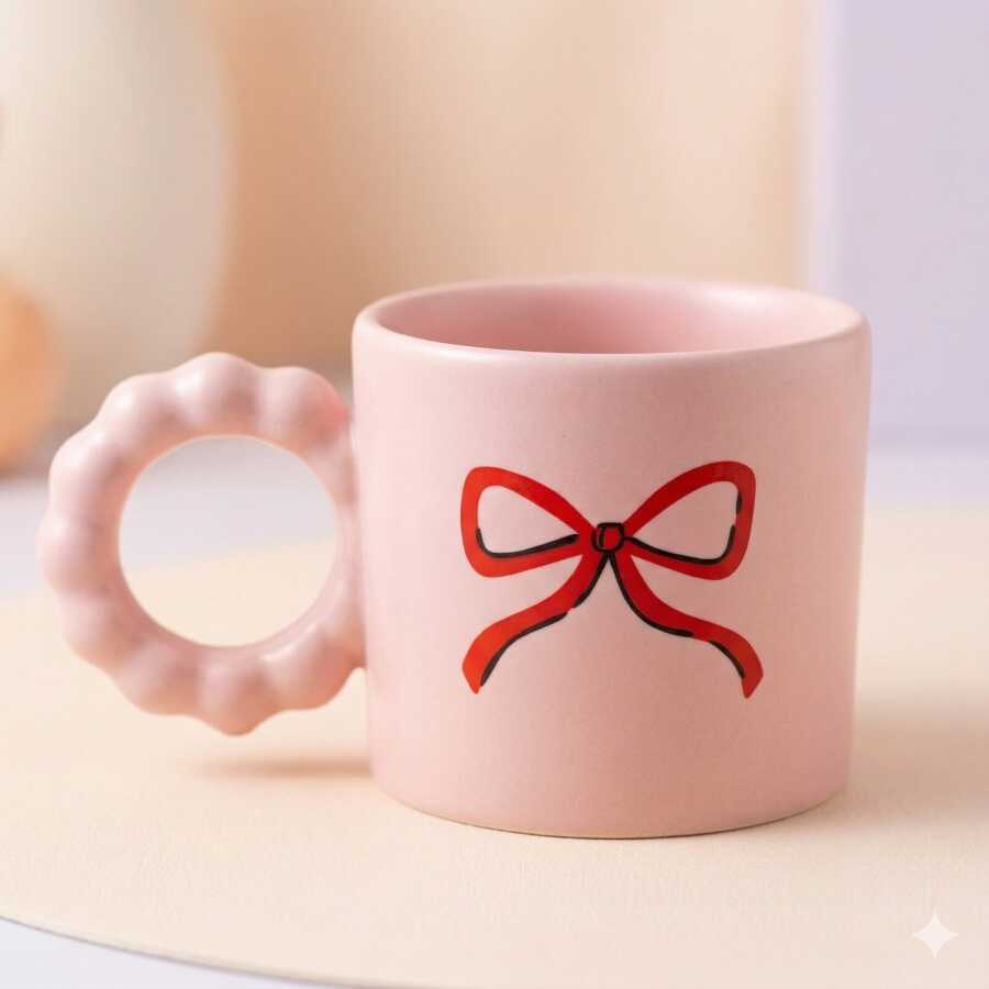 KIRMIZI EL ÇİZİMİ KURDELE-PRENSES KUPA - PEMBE GÖVDE PEMBE SAP