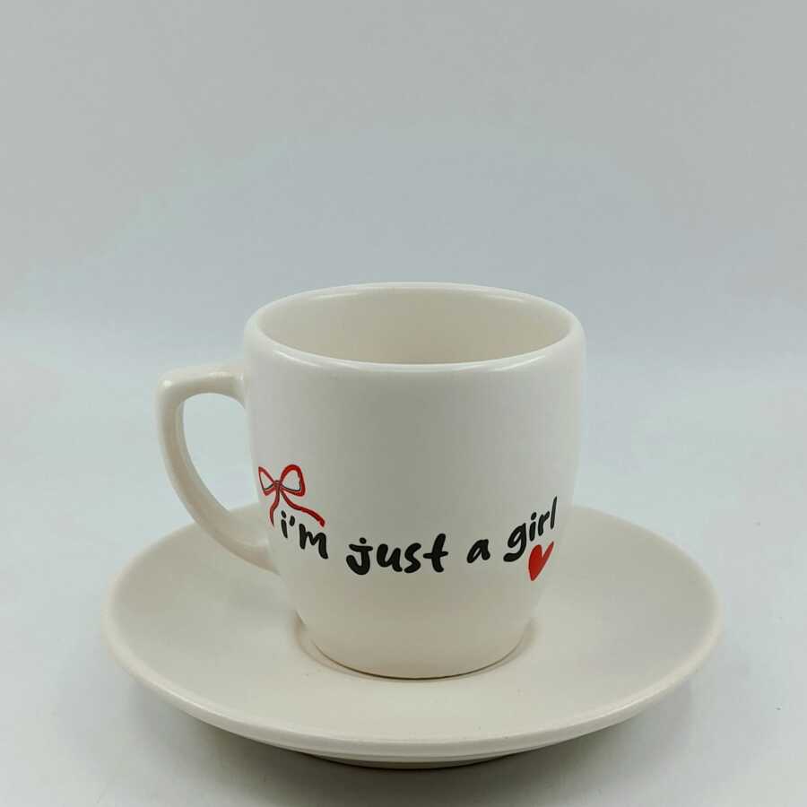 KIRMIZI KURDELE IM JUST A GİRL-KLASİK TÜRK KAHVESİ FİNCANI - TRANSPARAN GÖVDE