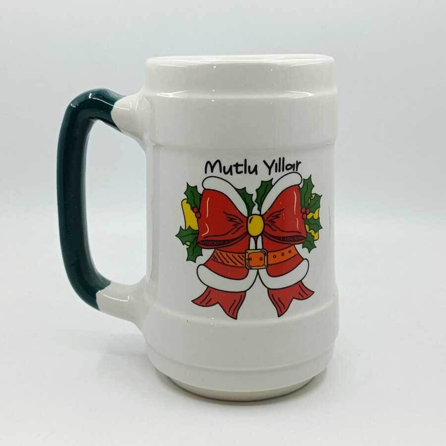 GEYİK ÇAM AĞACI NOEL BABA MUTLU YILLAR-SERAMİK BİRA BARDAĞI - YEŞİL SAP
