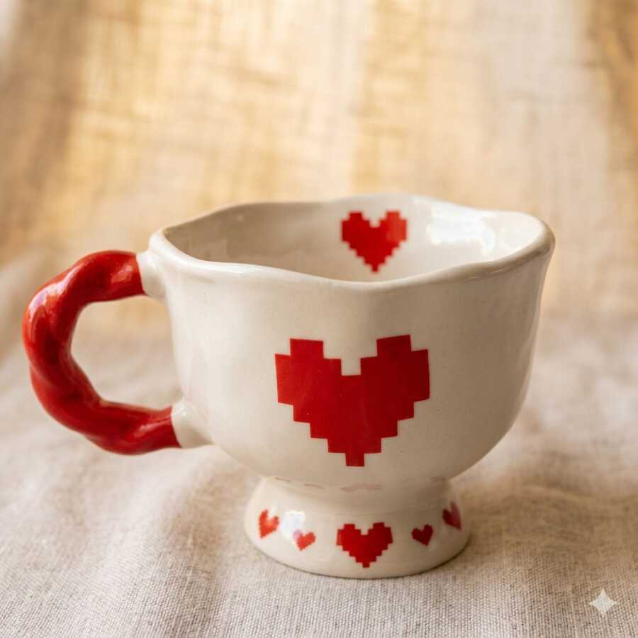 KIRMIZI PİKSEL KALP-SET-BALERİN KUPA - KIRMIZI SAP