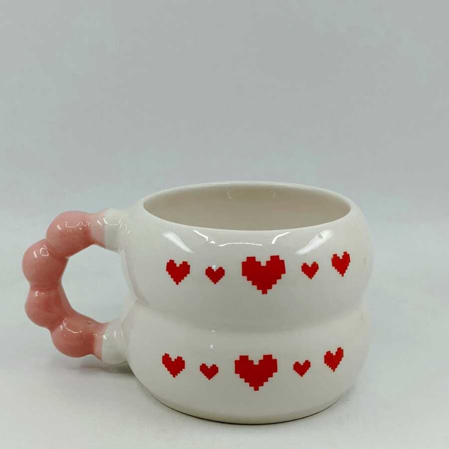 KIRMIZI PİKSEL KALPLER-HARMONİ KUPA - PEMBEE SAP