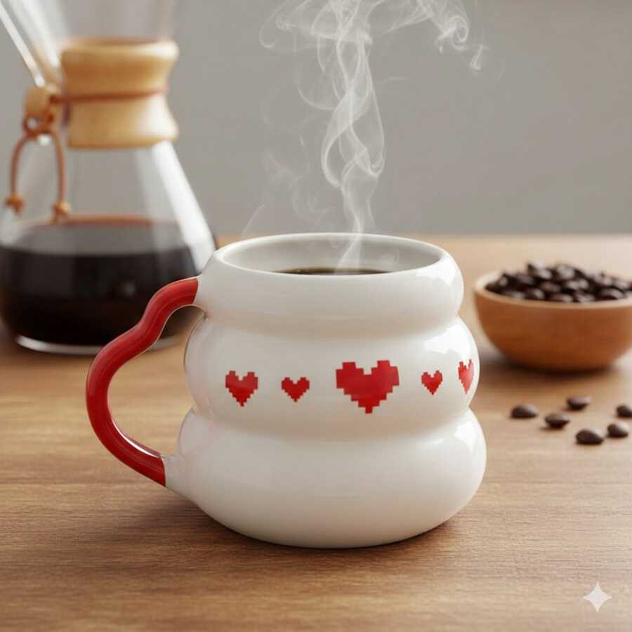 KIRMIZI PİKSEL KALPLER-KOVAN KUPA - KIRMIZI SAP