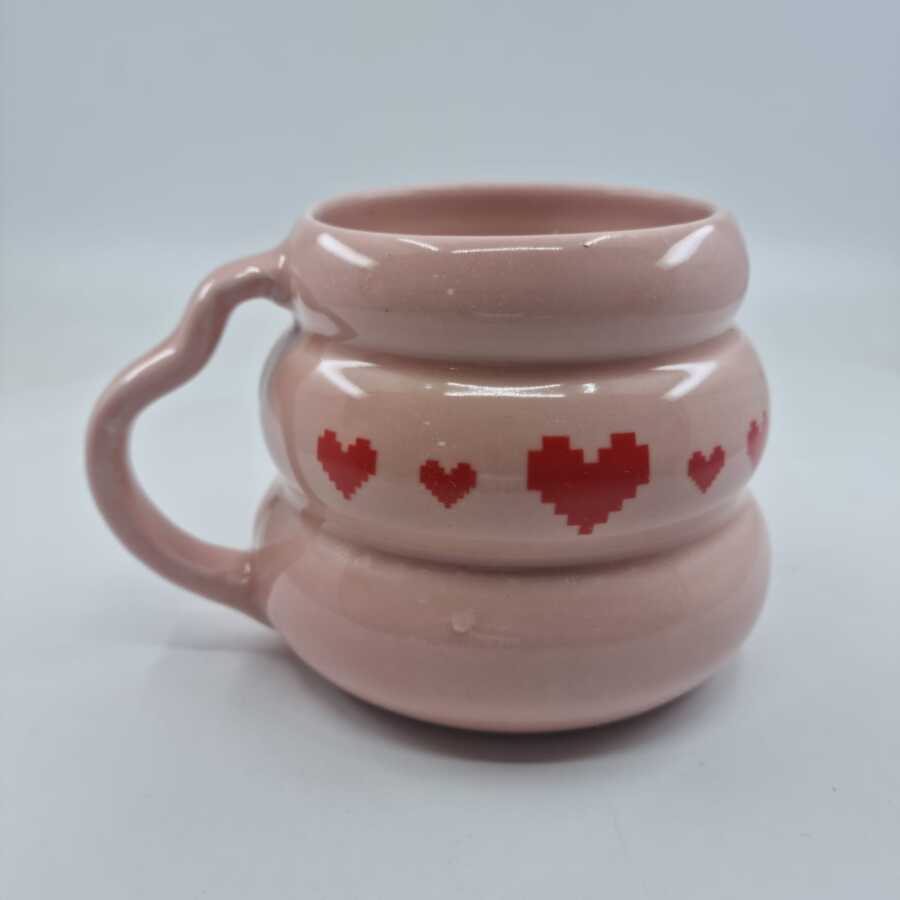 KIRMIZI PİKSEL KALPLER-KOVAN KUPA - PEMBE SAP PEMBE GÖVDE