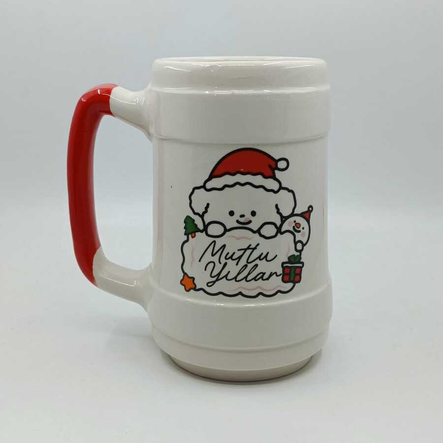 KÖPEKÇİK MUTLU YILLAR-SERAMİK BİRA BARDAĞI - KIRMIZI SAP