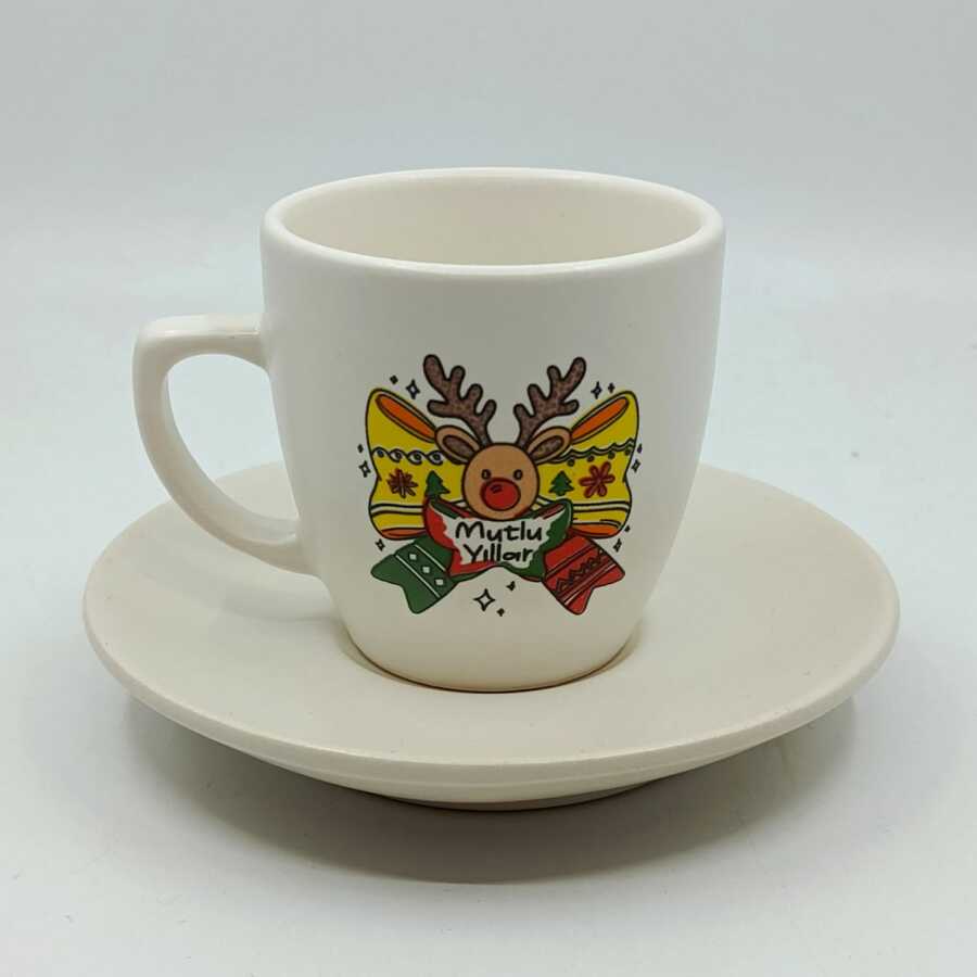 NOEL BABA MUTLU YILLAR-KLASİK TÜRK KAHVESİ FİNCANI - TRANSPARAN GÖVDE