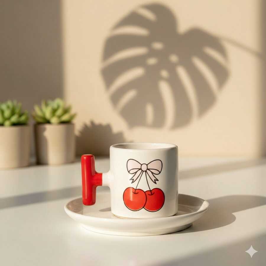 KURDELE KİRAZ-T TÜRK KAHVESİ FİNCANI - KIRMIZI SAP