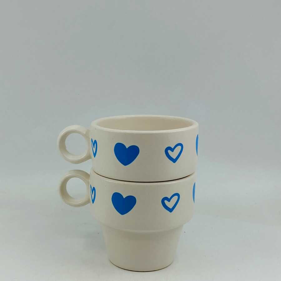 MAVİ BEYAZ KALPLER-İKİLİ ESPRESSO BARDAĞI - TRANSPARAN