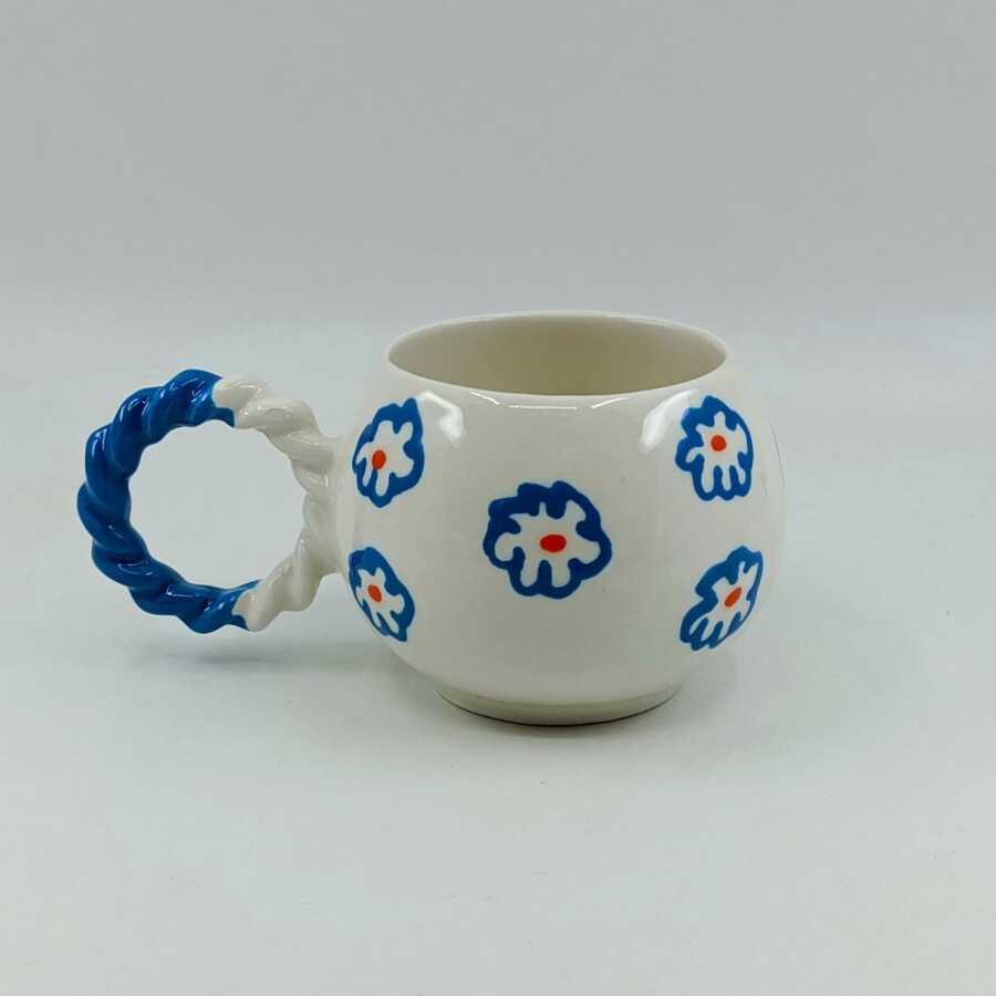 MAVİ EL ÇİZİMİ ÇİÇEKLER - 3D-BALONCUK KUPA - 3D