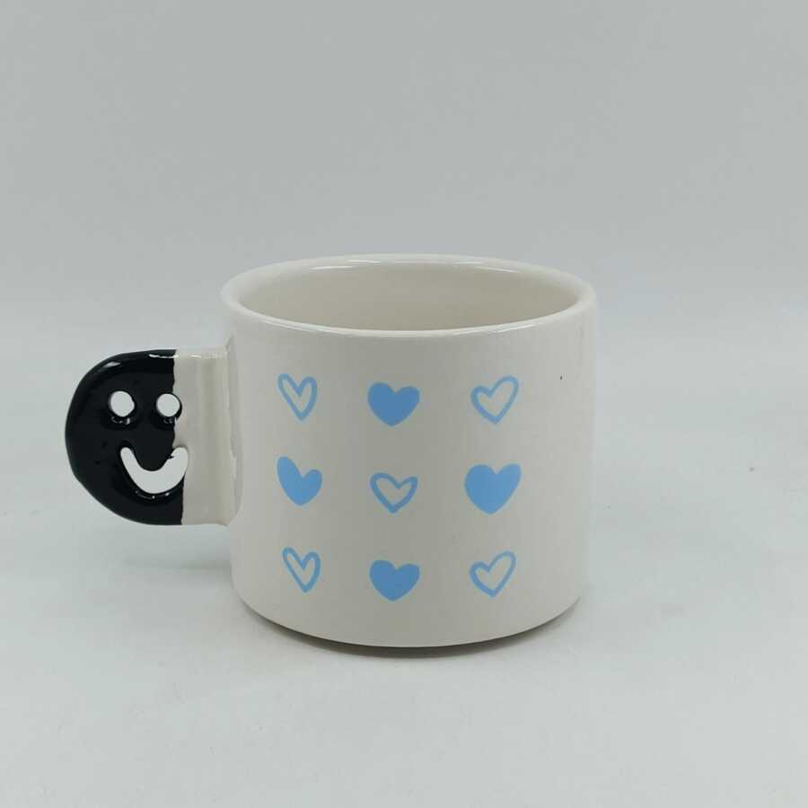 MAVİ KALP BEYAZ KALP-SMİLE KUPA - SİYAH SAP