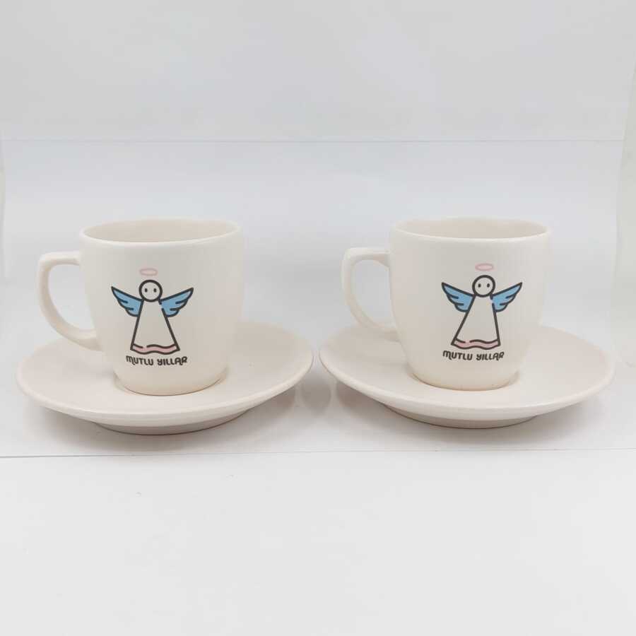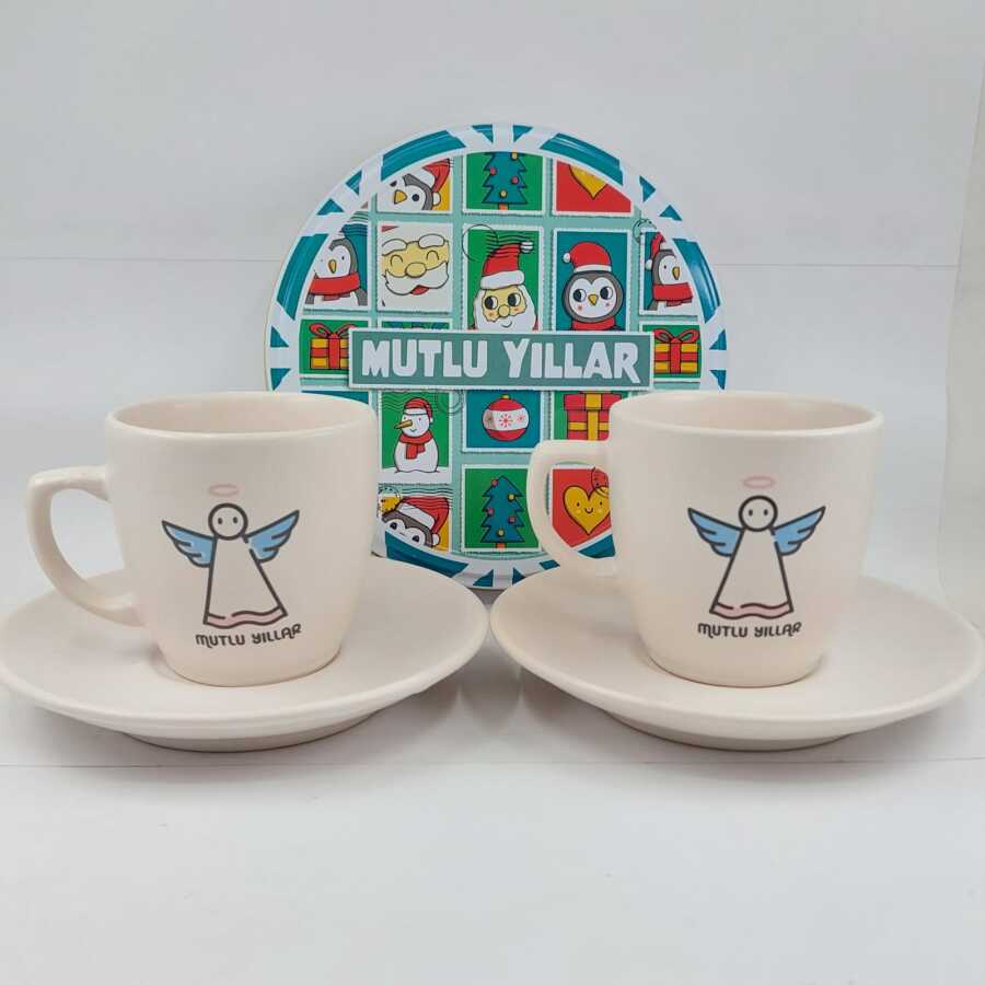 MELEK MUTLU YILLAR-SİLİNDİR METAL KUTU - İKİLİ TÜRK KAHVESİ FİNCANI TRANSPARAN SAP