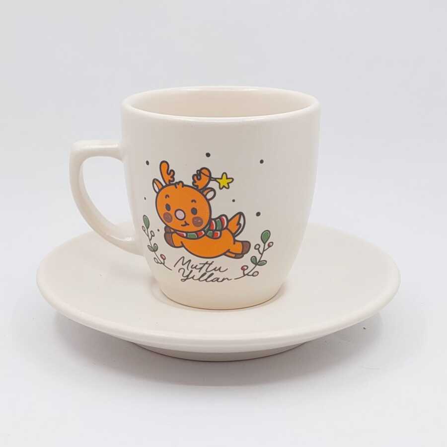 MİNİK GEYİK MUTLU YILLAR-KLASİK TÜRK KAHVESİ FİNCANI - TRANSPARAN GÖVDE