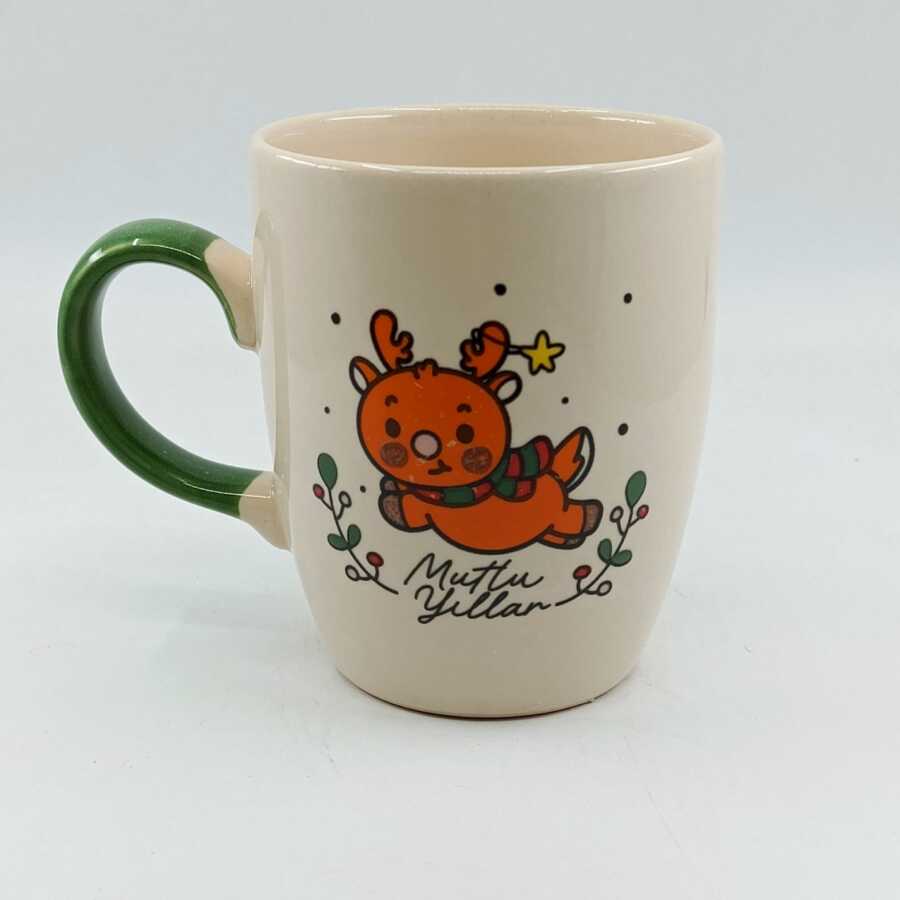 MİNİK GEYİK MUTLU YILLAR-OVAL KUPA - YEŞİL SAP