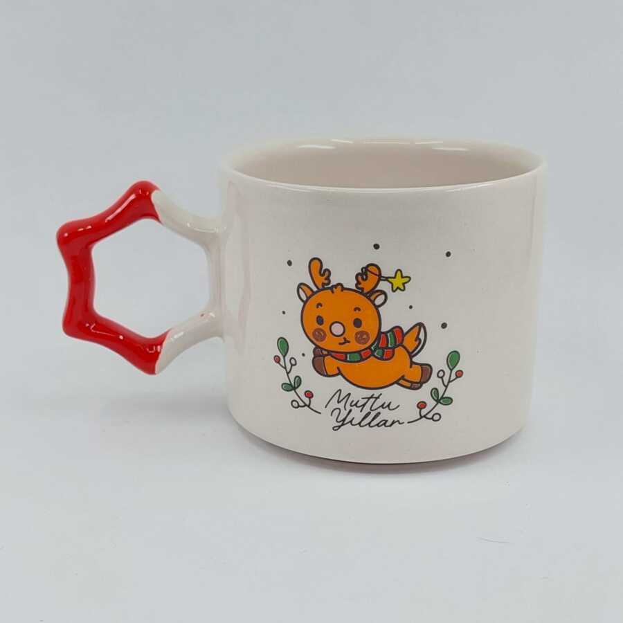 MİNİK GEYİK MUTLU YILLAR-YILDIZ KUPA - KIRMIZI SAP