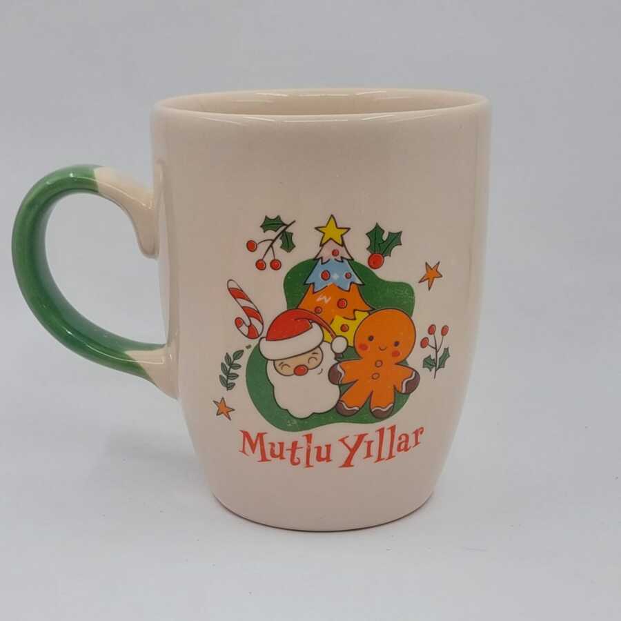 NEOL ÇAM AĞACI KURABİYE ADAM MUTLU YILLAR-OVAL KUPA - YEŞİL SAP