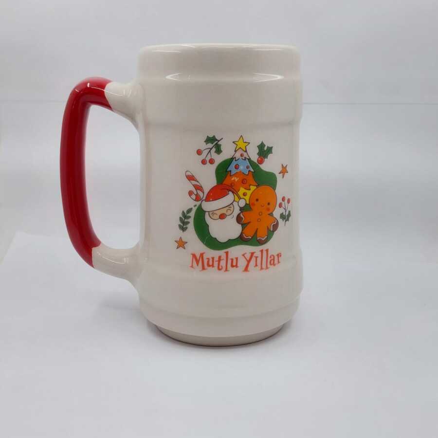 GEYİK ÇAM AĞACI NOEL BABA MUTLU YILLAR-SERAMİK BİRA BARDAĞI - KIRMIZI SAP
