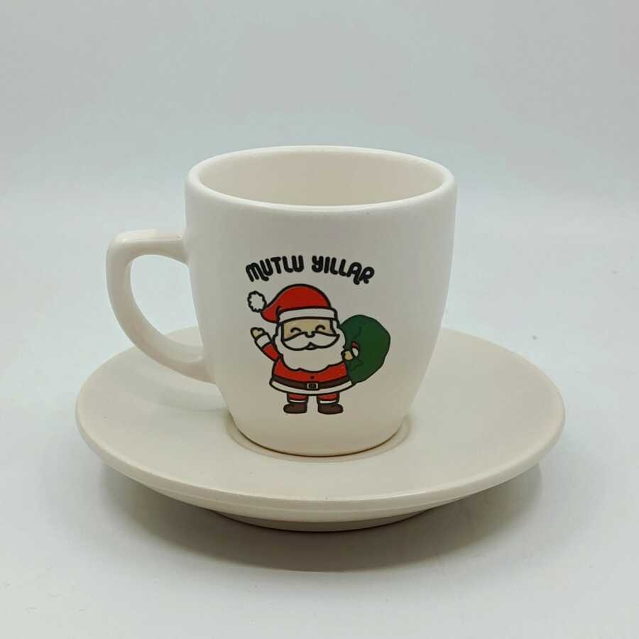 NOEL BABA MUTLU YILLAR-KLASİK TÜRK KAHVESİ FİNCANI - TRANSPARAN GÖVDE