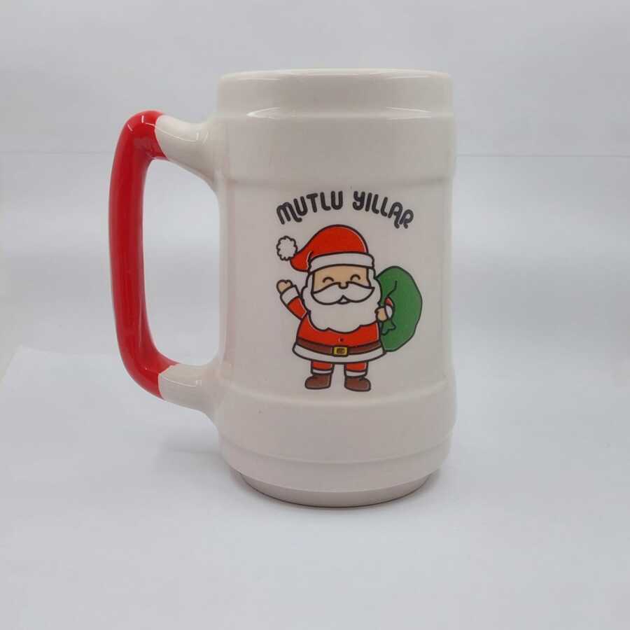 NOEL BABA MUTLU YILLAR-SERAMİK BİRA BARDAĞI - KIRMIZI SAP