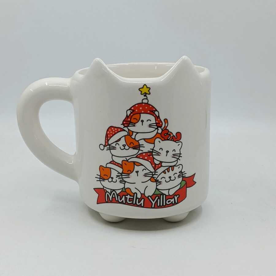 ÇAM AĞACI KEDİ MUTLU YILLAR-KEDİ KUPA - TRANSPARAN SAP