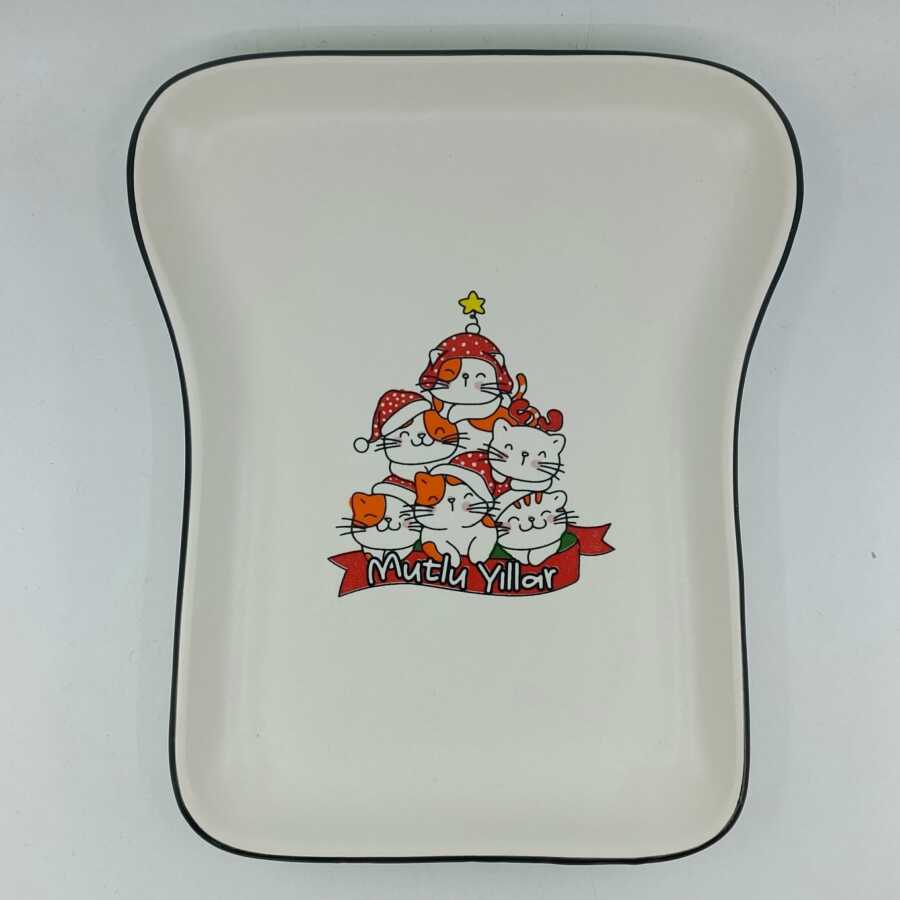 ÇAM AĞACI KEDİ MUTLU YILLAR-NOVA TOST TABAĞI - TRANSPARAN GÖVDE
