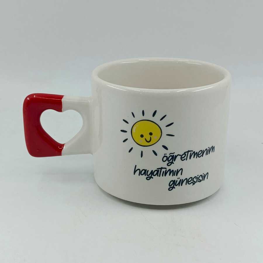 ÖĞRETMENİM HAYATIMIN GÜNEŞİSİN-KALP KUPA - KIRMIZI SAP