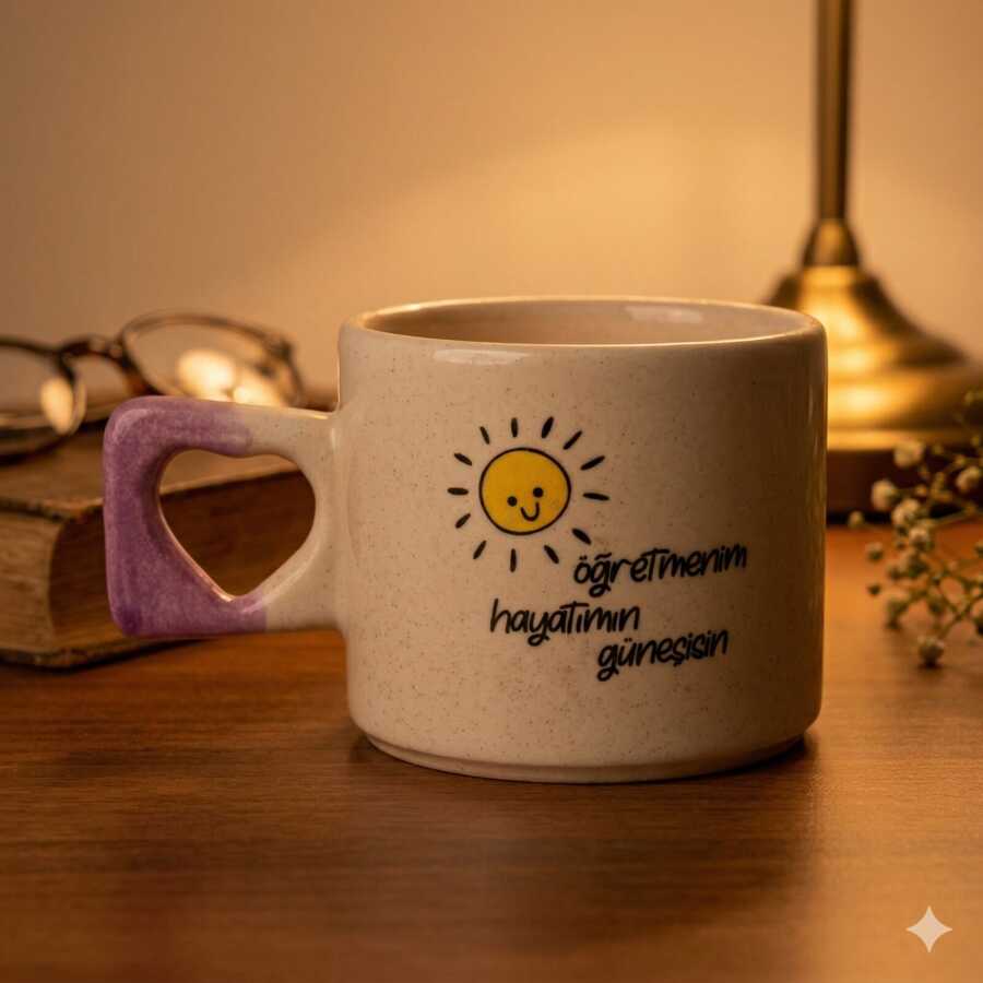 ÖĞRETMENİM HAYATIMIN GÜNEŞİSİN-KALP KUPA - MOR SAP