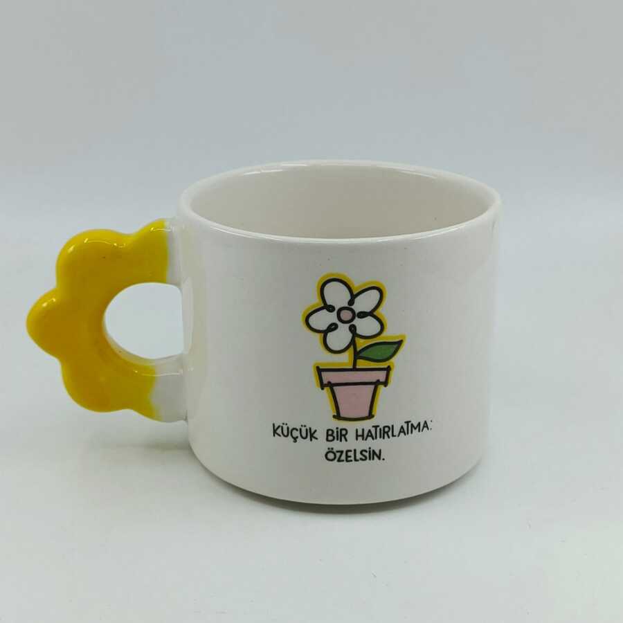 KAHVE TUTAN ÇİÇEK-PAPATYA KUPA - SARI SAP