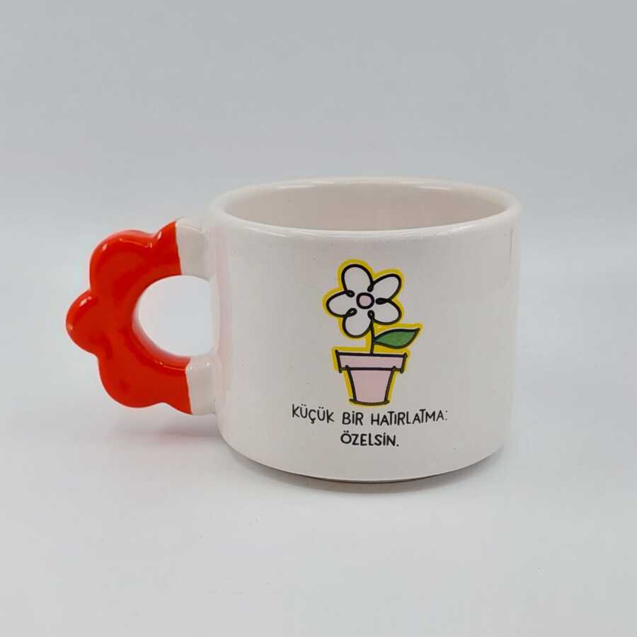 KAHVE TUTAN ÇİÇEK-PAPATYA KUPA - TURUNCU SAP