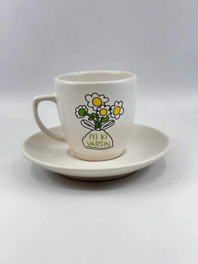 PAPATYA BUKET İYİ Kİ VARSIN-KLASİK TÜRK KAHVESİ FİNCANI - TRANSPARAN GÖVDE