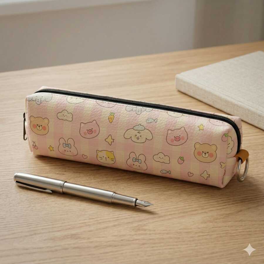 PEMBE DOKULU HAYVANLAR-DERİ KALEM KUTU - TEKLİ