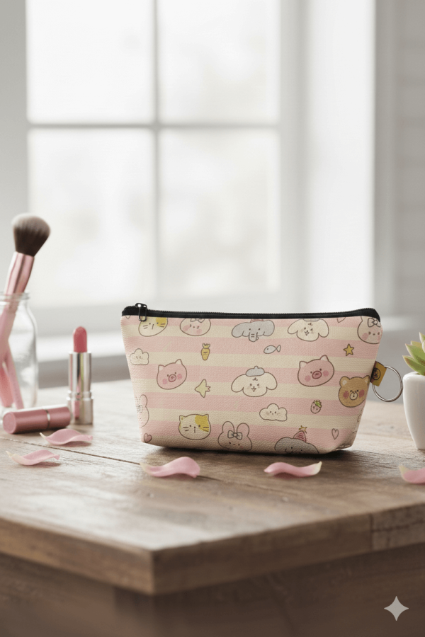 PEMBE DOKULU HAYVANLAR-MAKYAJ ÇANTASI - TEKLİ