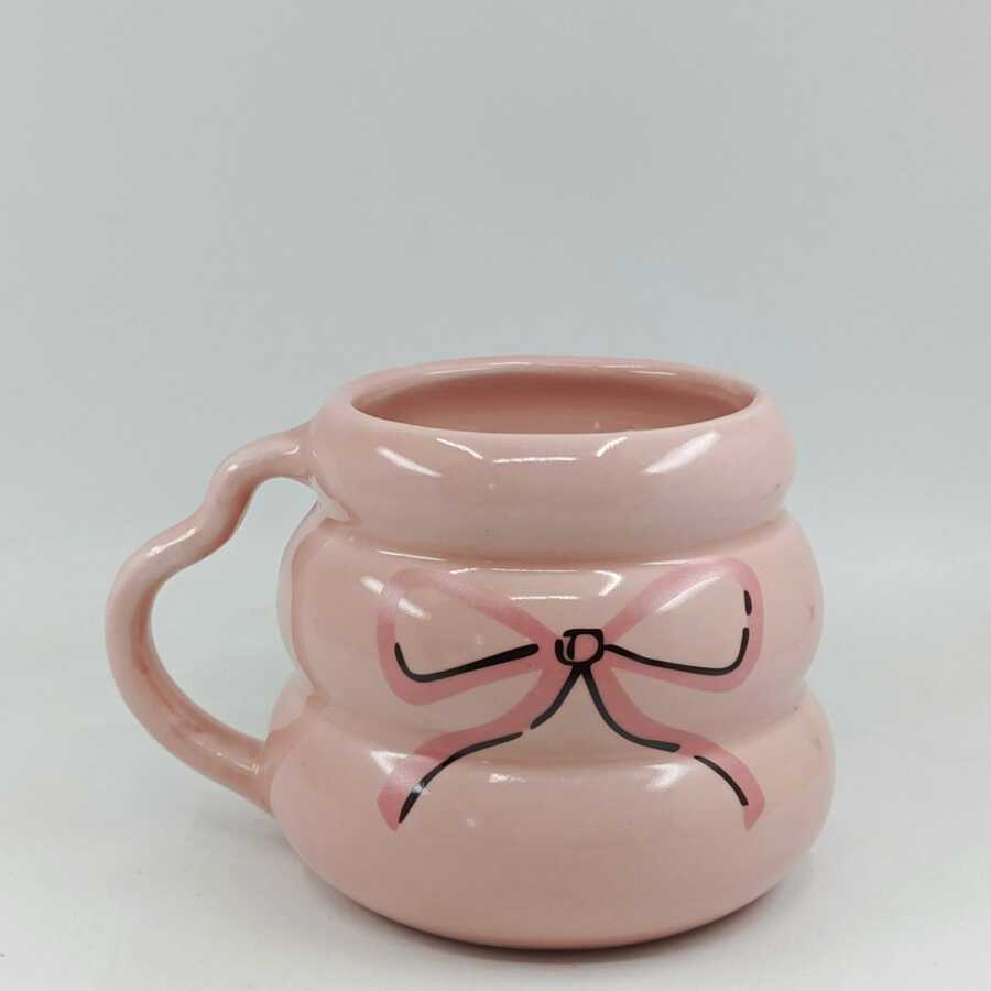 PEMBE EL ÇİZİM KURDELE-KOVAN KUPA - PEMBE SAP PEMBE GÖVDE