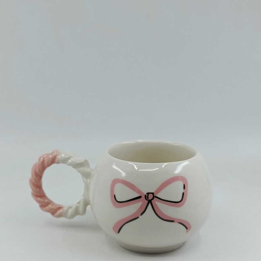 PEMBE EL ÇİZİMİ KURDELE-ÖRGÜLÜ BALONCUK KUPA - PEMBE SAP