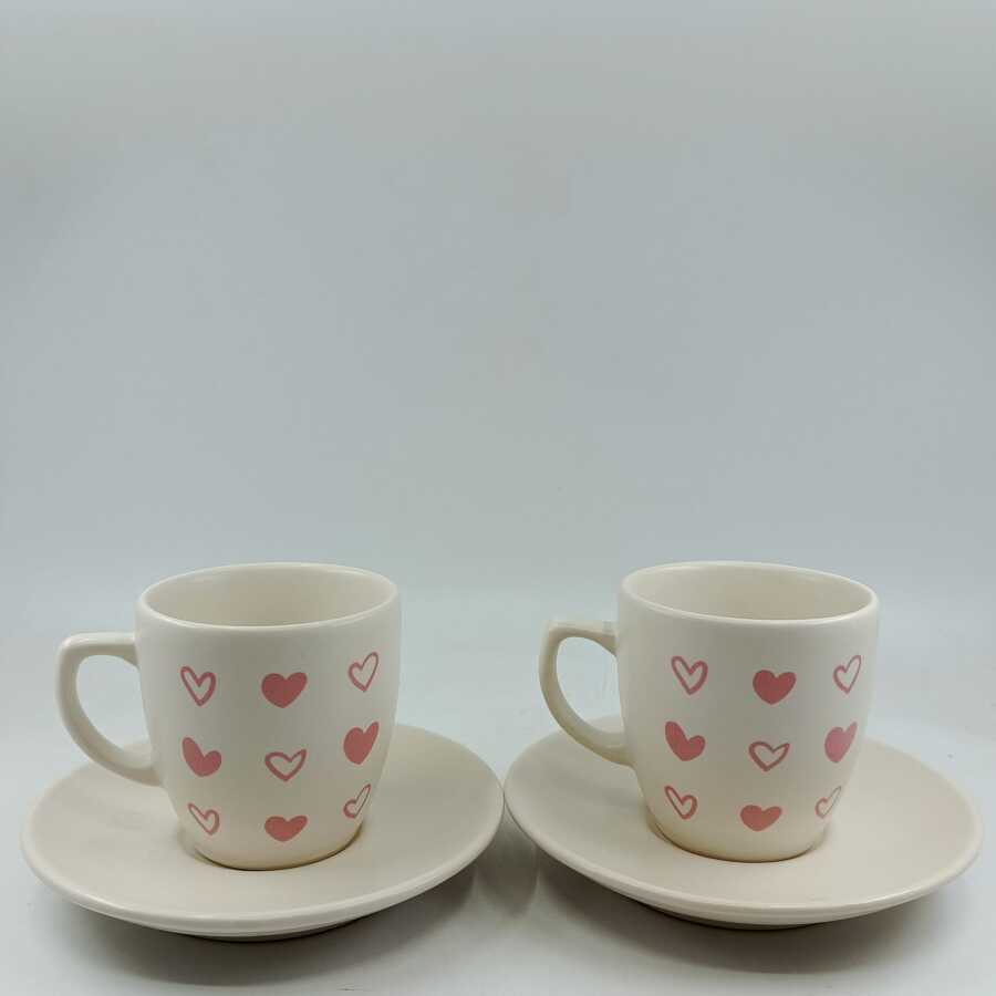 PEMBE KALP BEYAZ KALP-İKİLİ TÜRK KAHVESİ FİNCANI - TRANSPARAN