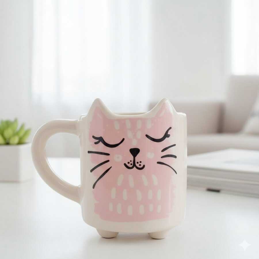 PEMBE KEDİ-KEDİ KUPA - TRANSPARAN SAP