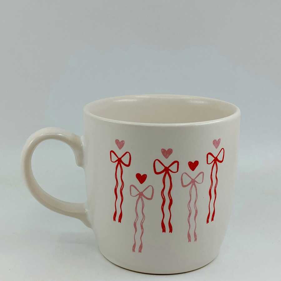 PEMBE KIRMIZI KURDELELER-BODUR KUPA - TRANSPARAN