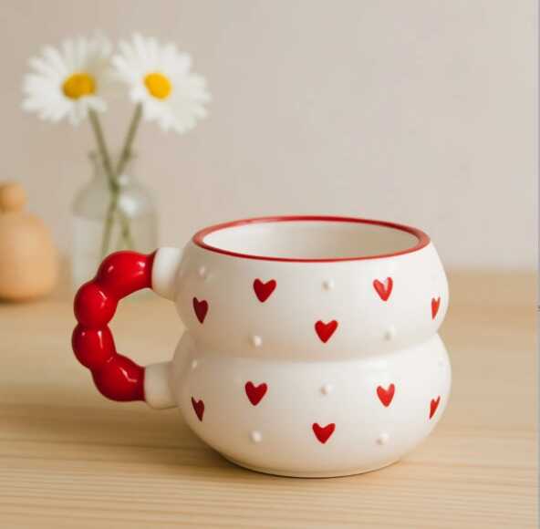 PUANTİYELİ KIRMIZI KALPLER - 3D-HARMONİ KUPA - 3D