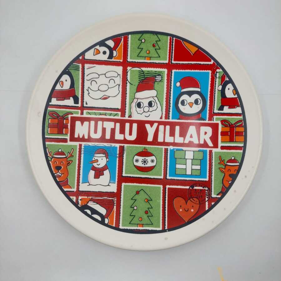 MİNİK GEYİK MUTLU YILLAR-SATÜRN SUNUM TABAĞI - TRANSPARAN GÖVDE